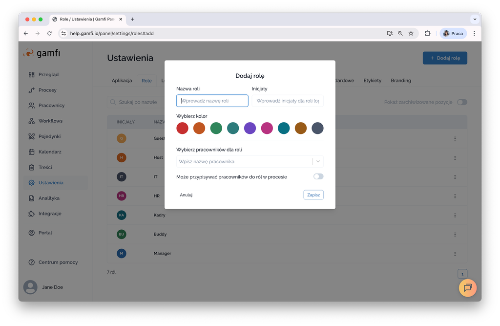 - Color - select the color that will distinguish the Role in the Actions list during Workflow configuration