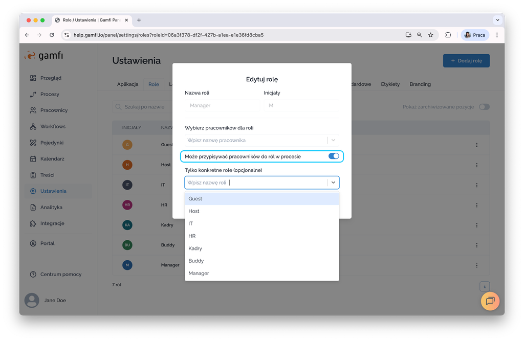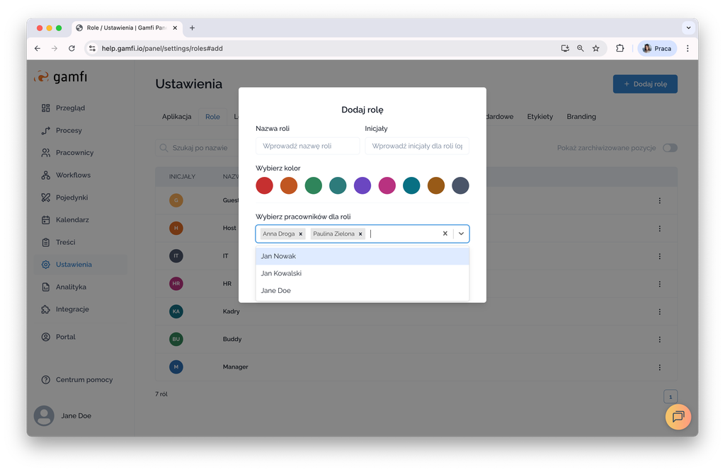 - Select employee - here you can designate employees who will be automatically assigned to a Role when starting Processes or will be treated as recommended employees for this Role (learn more 👉🏻 here)