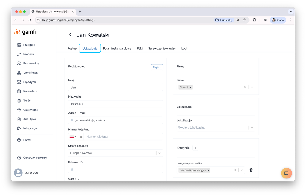 Here you can change employee details and permissions. To do so, go to the "Settings" tab, where you can: