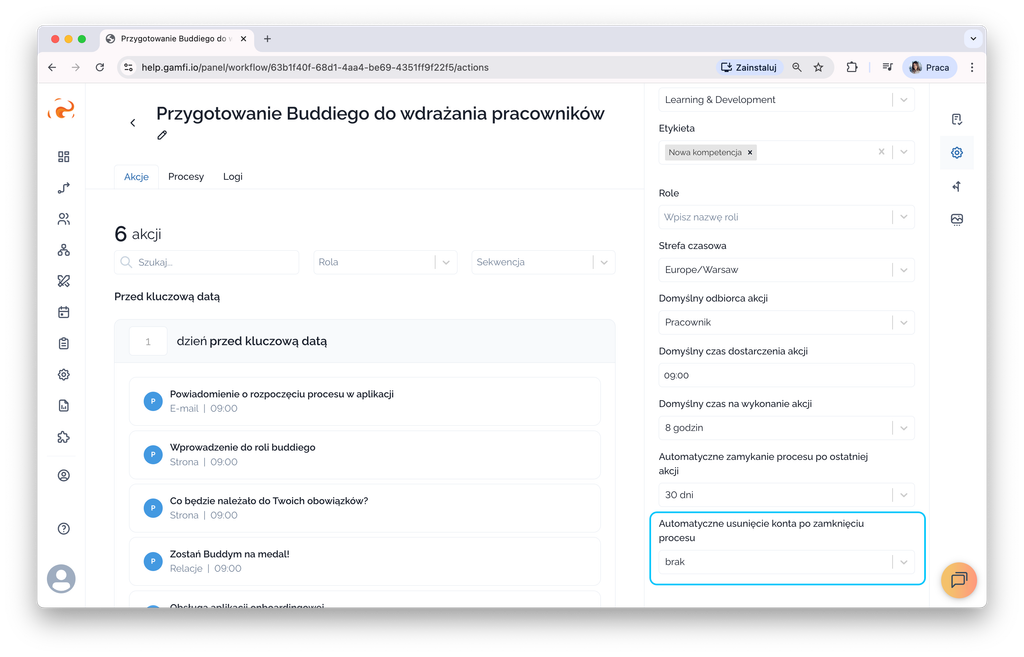 In the field "Automatic account removal after the process is closed" you can choose one of the predefined options or indicate your own deadline (in hours).