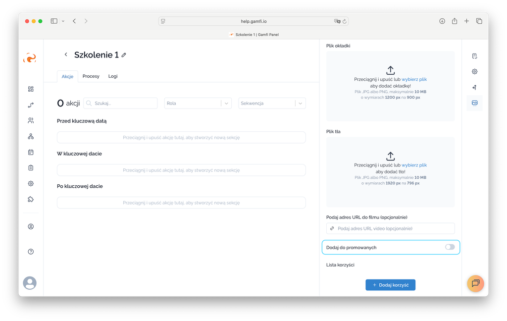- add to promoted - if you want a given Educational Module to appear among the proposed training courses on the User Dashboard: