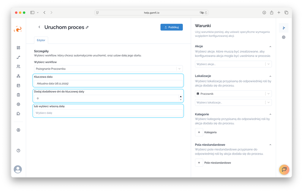 Krok 2: Wybierz pracownika, któremu chcesz uruchomić Proces i wskaż datę kluczową.