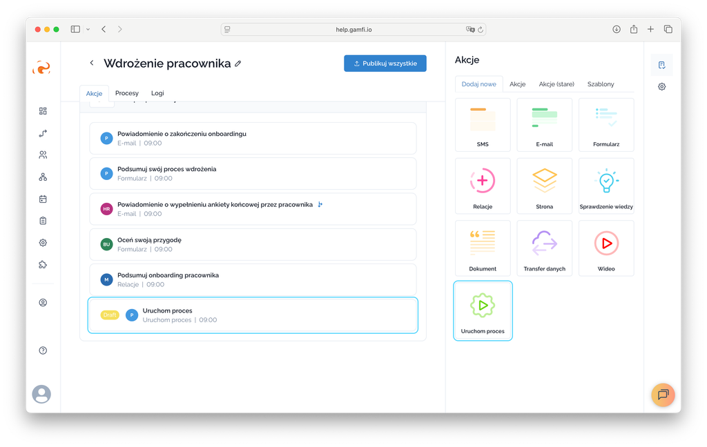 Uruchomienie Procesu onboardingowego wymaga jedynie kilku prostych kliknięć.